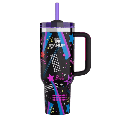 The Barbie x Stanley Exclusive Tumbler ’80s Rockers Quencher 40oz is a must-have for those who love a blend of style and practicality. Designed to stand out with its unique Western paisley print, this tumbler brings a touch of nostalgia and premium functionality.